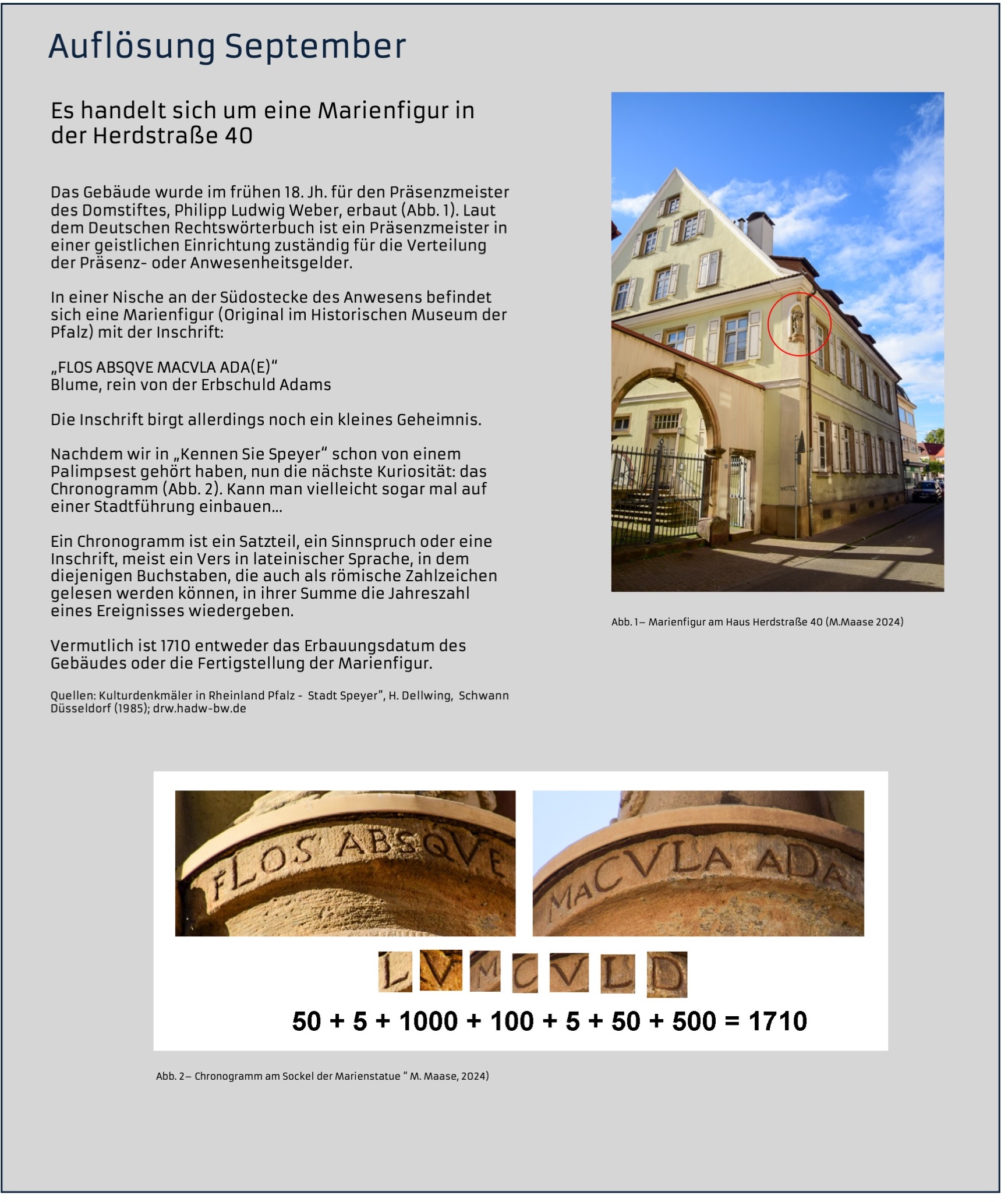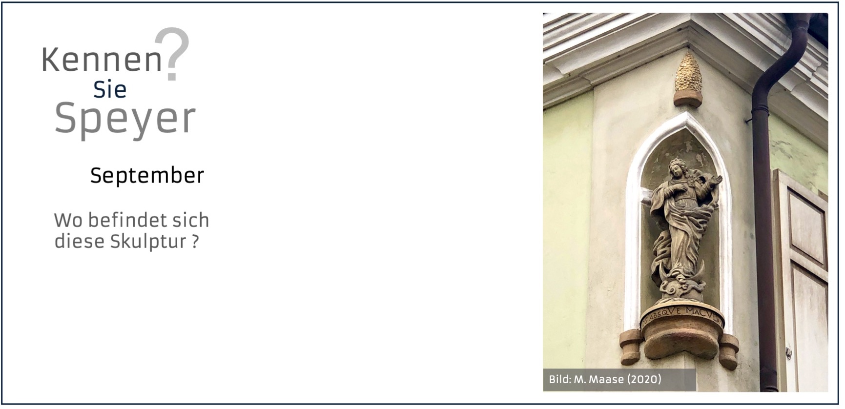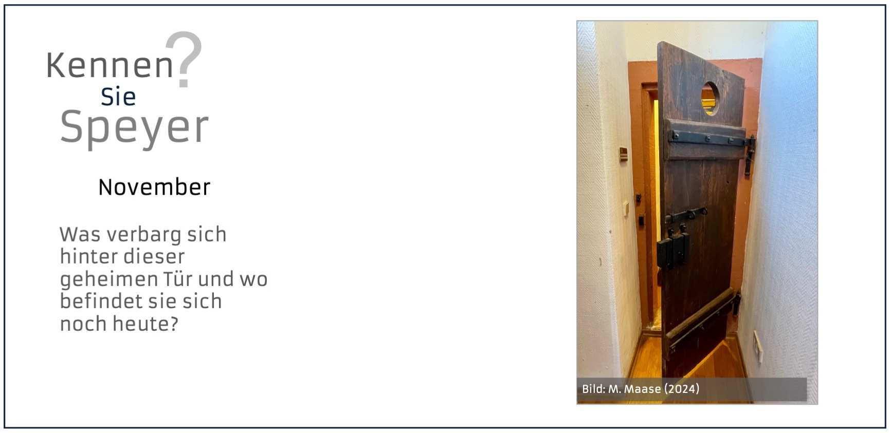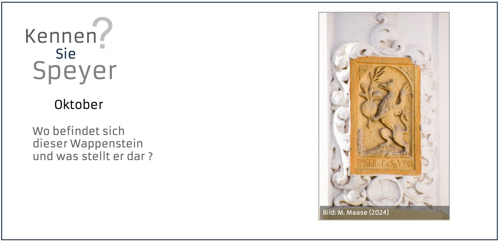 Klar: Dom, Judenhof, Altpörtel....Aber Speyer hält auch viele kleine, verborgene Schätzchen bereit: Details und Sehenswürdigkeiten abseits der klassischen Pfade. Für ein Jahr poste ich einmal im Monat hier ein Bild und frage „Kennen Sie Speyer?“. Was sieht man auf dem Bild, wo in Speyer befindet es sich und was ist die Geschichte dahinter?