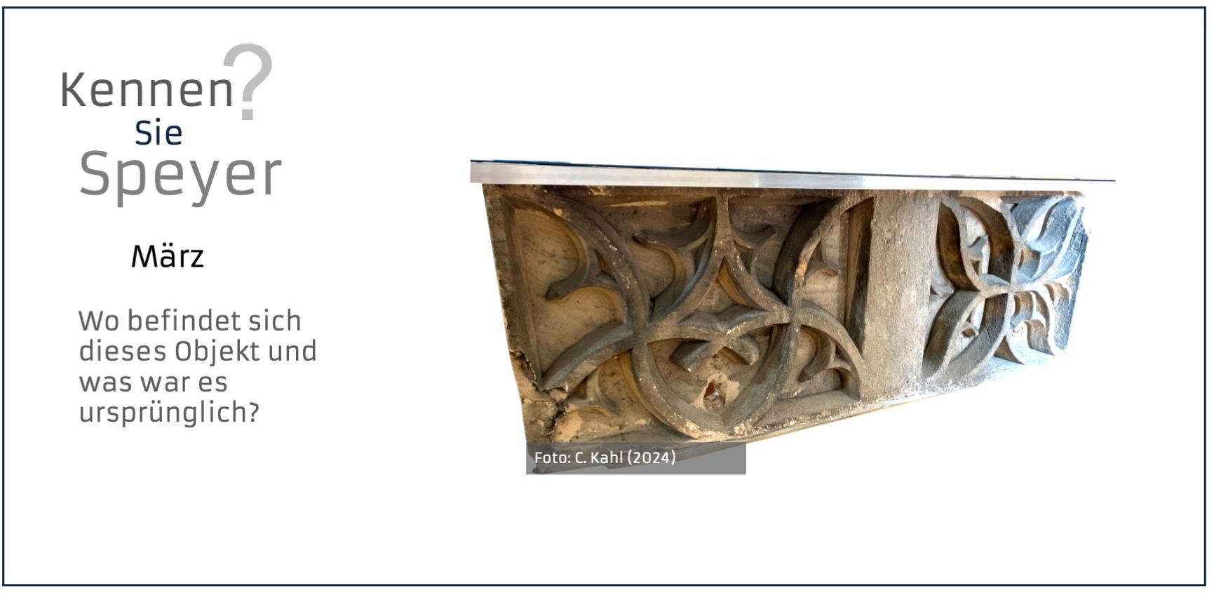Klar: Dom, Judenhof, Altpörtel....Aber Speyer hält auch viele kleine, verborgene Schätzchen bereit: Details und Sehenswürdigkeiten abseits der klassischen Pfade. Für ein Jahr poste ich einmal im Monat hier ein Bild und frage „Kennen Sie Speyer?“. Was sieht man auf dem Bild, wo in Speyer befindet es sich und was ist die Geschichte dahinter?
