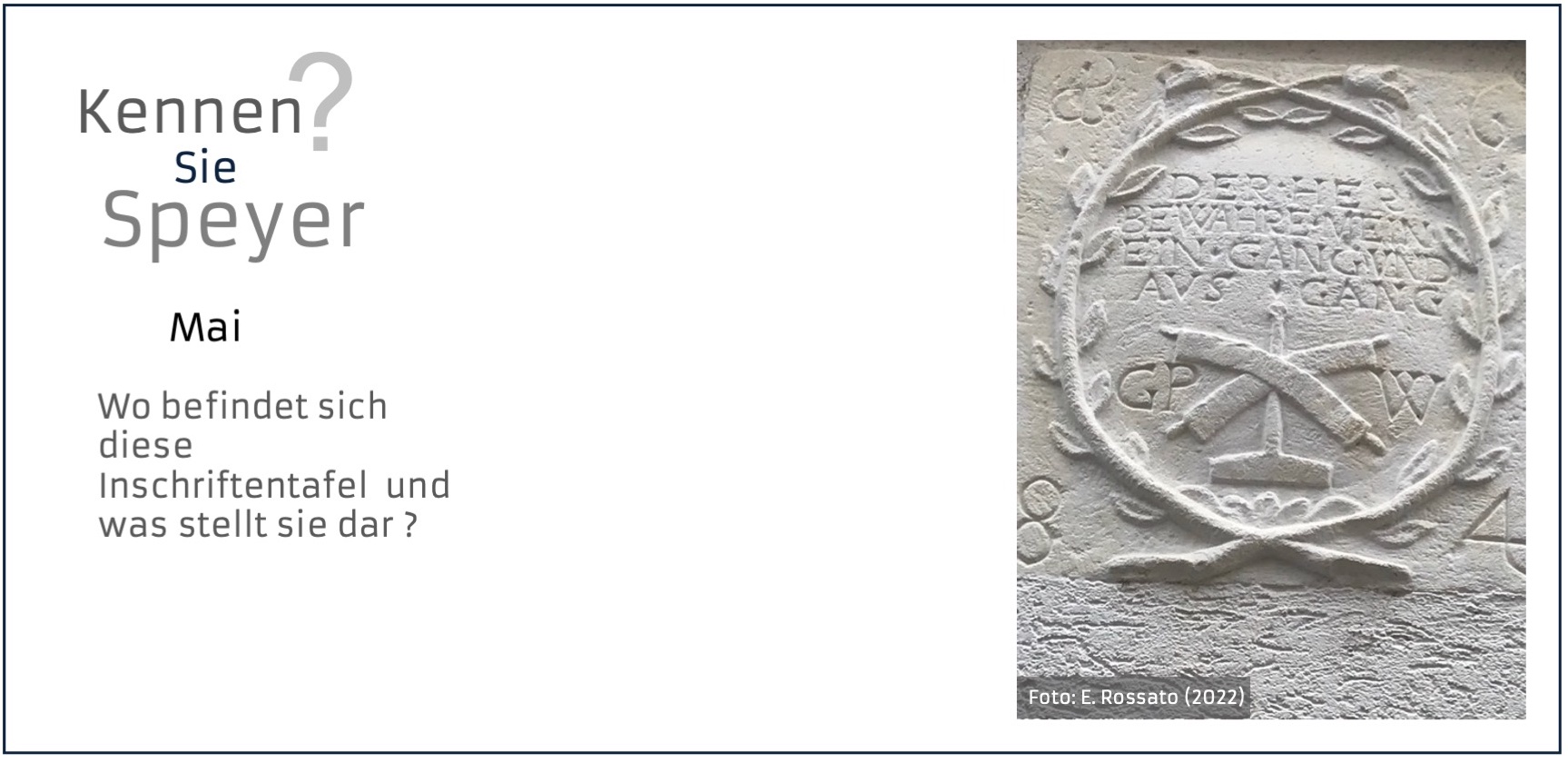 Klar: Dom, Judenhof, Altpörtel....Aber Speyer hält auch viele kleine, verborgene Schätzchen bereit: Details und Sehenswürdigkeiten abseits der klassischen Pfade. Für ein Jahr poste ich einmal im Monat hier ein Bild und frage „Kennen Sie Speyer?“. Was sieht man auf dem Bild, wo in Speyer befindet es sich und was ist die Geschichte dahinter?