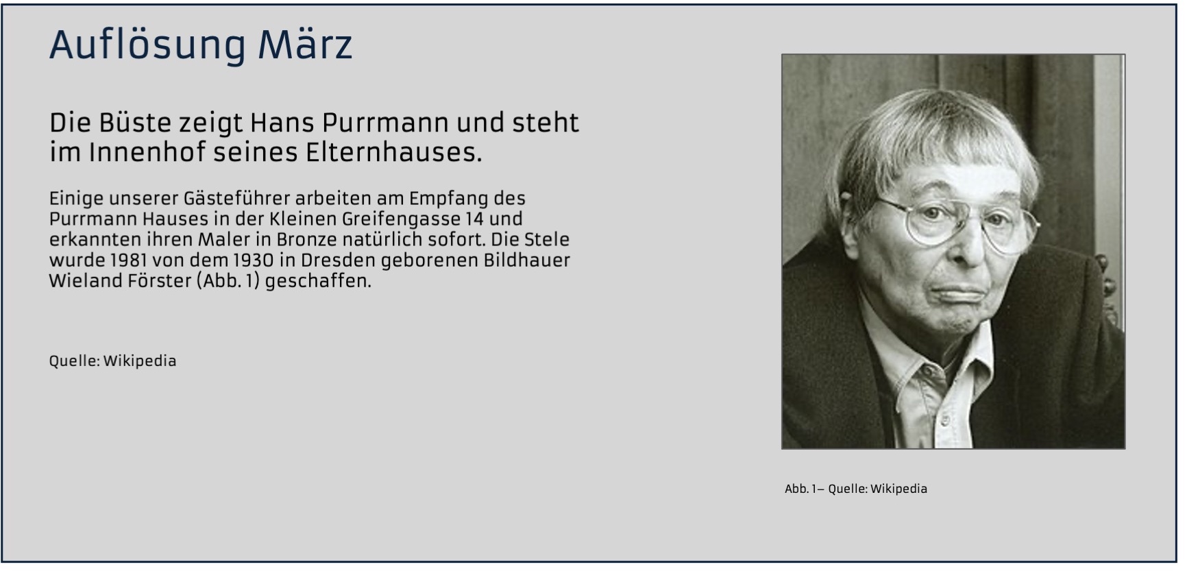 Jeder ist zum Mitraten und Kommentieren herzlich eingeladen. Im folgenden Monat wird dann aufgelöst, wobei Eure Beiträge natürlich einfließen, damit wir alle noch was lernen können.