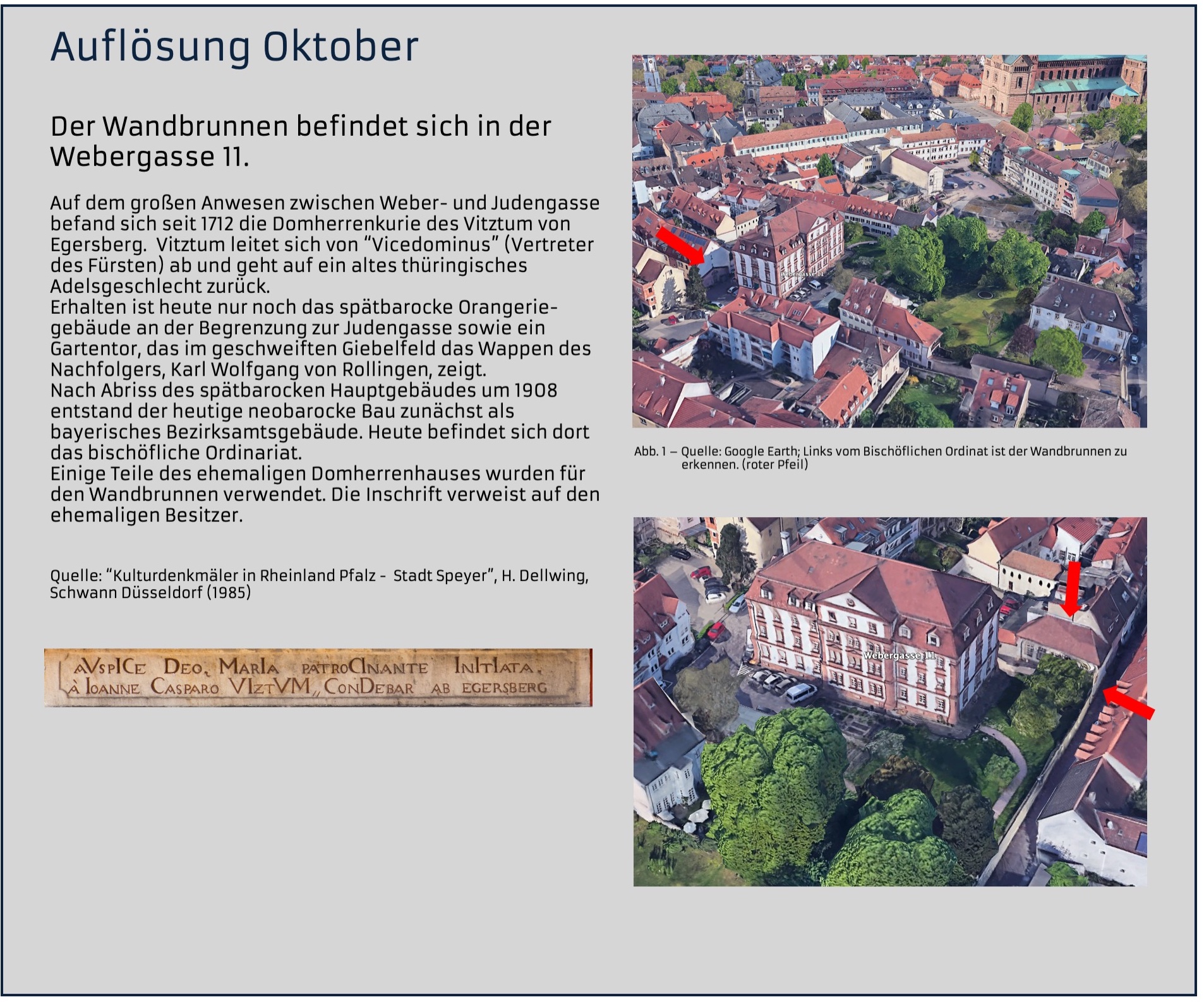 Klar: Dom, Judenhof, Altpörtel....Aber Speyer hält auch viele kleine, verborgene Schätzchen bereit: Details und Sehenswürdigkeiten abseits der klassischen Pfade. Für ein Jahr poste ich einmal im Monat hier ein Bild und frage „Kennen Sie Speyer?“. Was sieht man auf dem Bild, wo in Speyer befindet es sich und was ist die Geschichte dahinter?