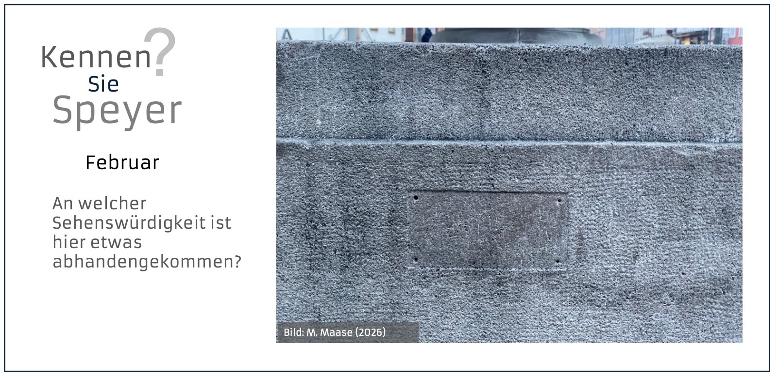 Klar: Dom, Judenhof, Altpörtel....Aber Speyer hält auch viele kleine, verborgene Schätzchen bereit: Details und Sehenswürdigkeiten abseits der klassischen Pfade. Für ein Jahr poste ich einmal im Monat hier ein Bild und frage „Kennen Sie Speyer?“. Was sieht man auf dem Bild, wo in Speyer befindet es sich und was ist die Geschichte dahinter?