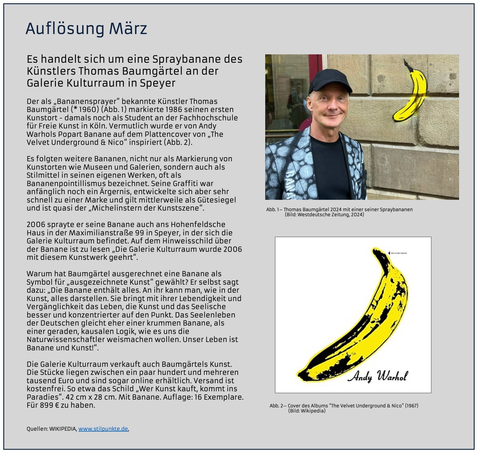 Jeder ist zum Mitraten und Kommentieren herzlich eingeladen. Im folgenden Monat wird dann aufgelöst, wobei Eure Beiträge natürlich einfließen, damit wir alle noch was lernen können.
